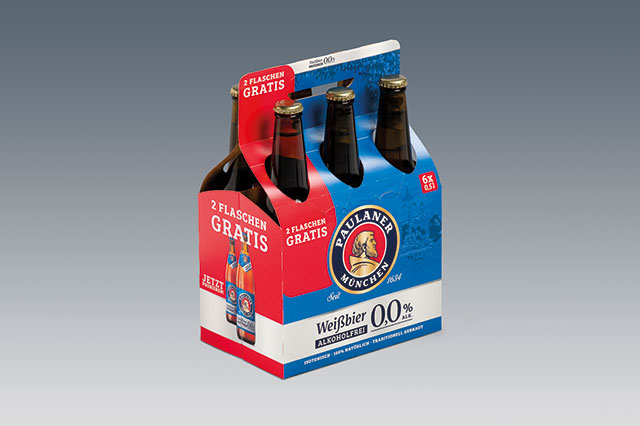 Die Flaschen oder Dosen werden mit bis zu 170 Verpackungen pro Minute in Manschetten oder vollverschlossene Schachteln verpackt.