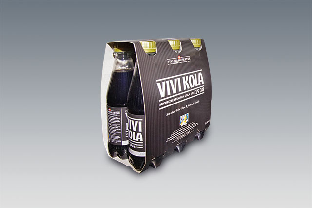 Die Crate-Cover Maschine legt eine Kartonauflage auf einen Getränkekasten auf. Die Auflage wird an den Ecken des Kastens festgeclippt und kann als zusätzliche Werbefläche, z.B. für Verkaufsaktionen, genutzt werden.